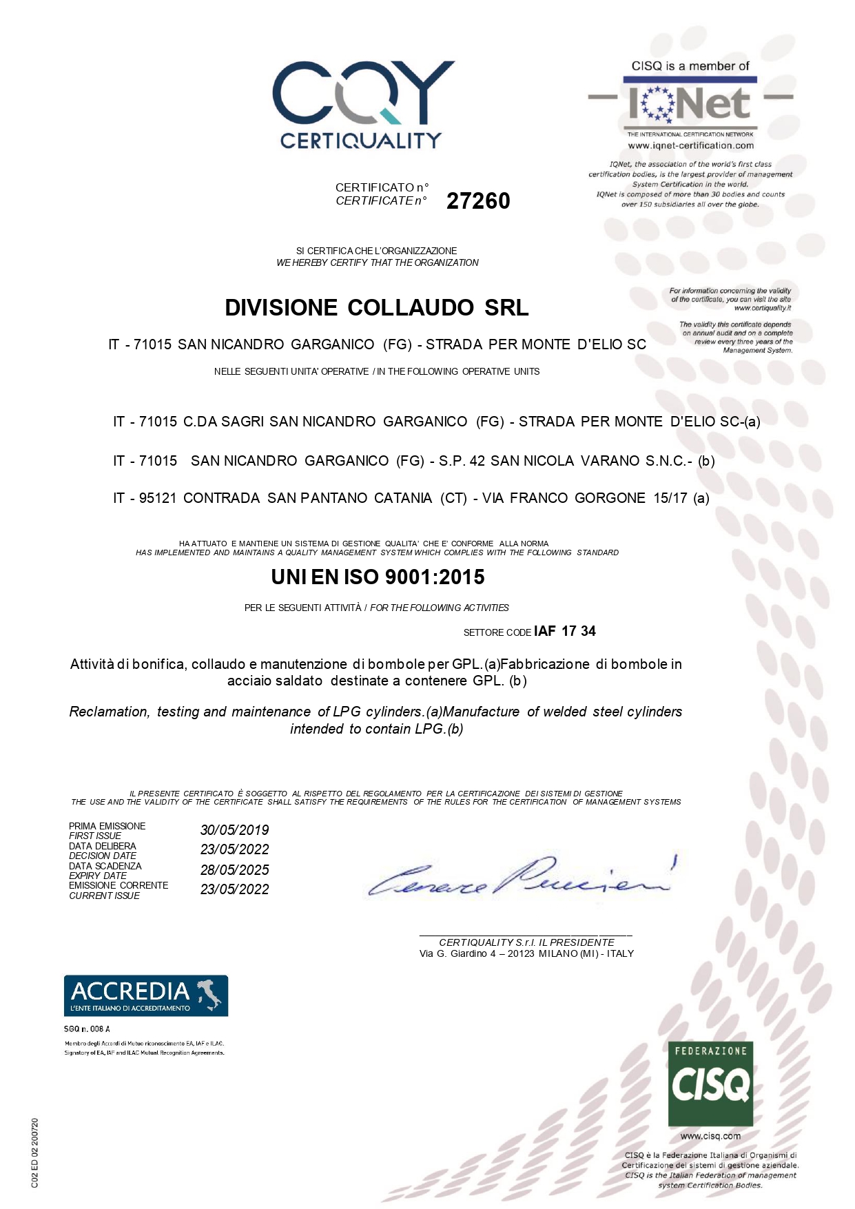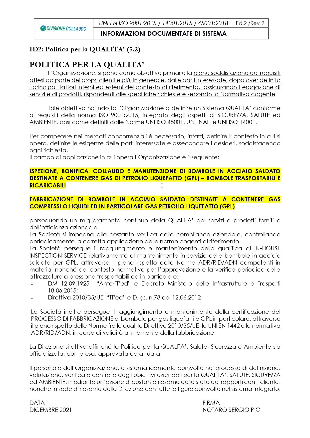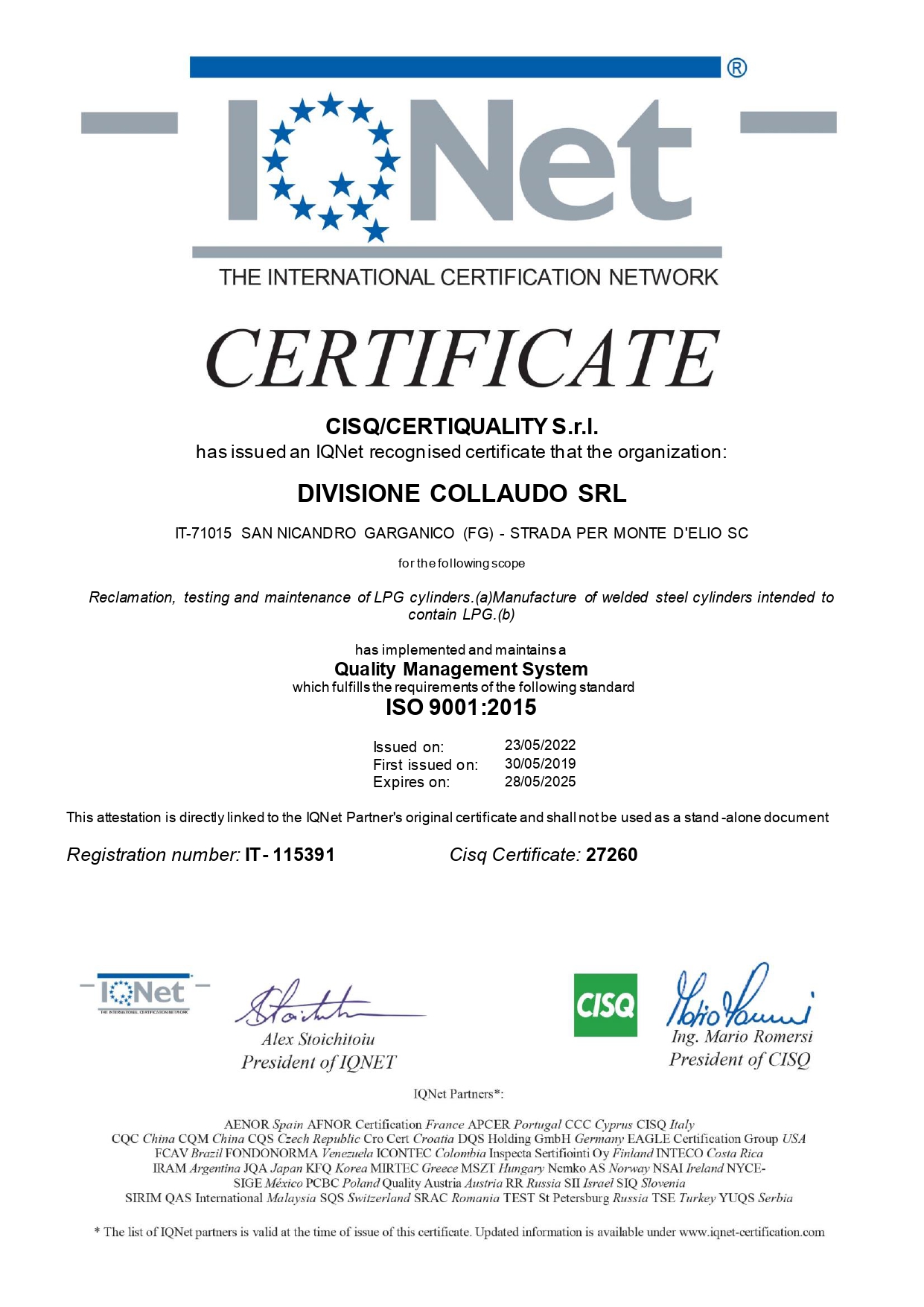Divisione Collaudo considera la QUALITA’ un fattore indispensabile per costruire e strutturare il successo e la propria presenza sul mercato Nazionale ed Internazionale.